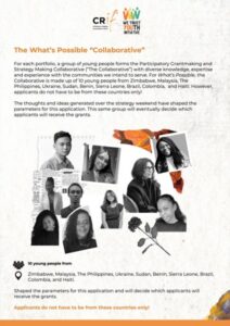 What’s Possible fund will offer grants to directly support young activists, community workers, and organizers across many focus areas–all with the aim of providing critical direct support to advance their continued safety, wellbeing and human rights.